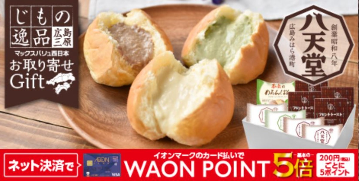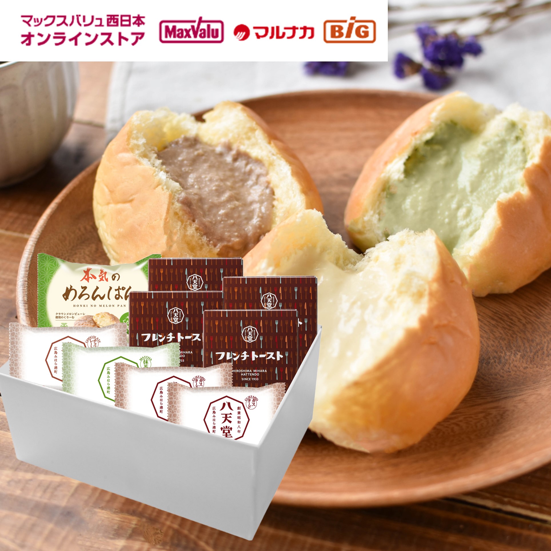 八天堂 マックスバリュ限定オリジナルセット(フレンチトースト×4、くりーむパン(カスタード×2、抹茶×1、チョコレート×1)、本気のめろんぱん×1) 本体4,280円 (税込 4,622.40円)