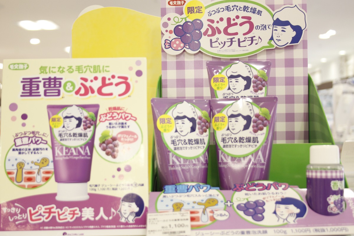 「毛穴撫子 ジューシーぶどうの重曹泡洗顔」は、山梨県産ぶどうを使った洗顔料。