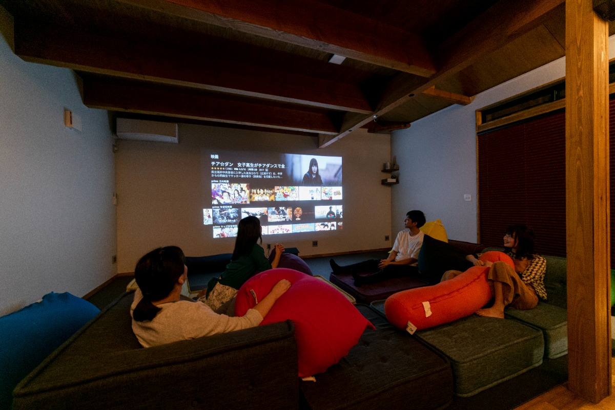 人をダメにするソファー、ゲームやスポーツ観戦を迫力満点で楽しめる120インチのプロジェクターなど驚きの設備が整う。