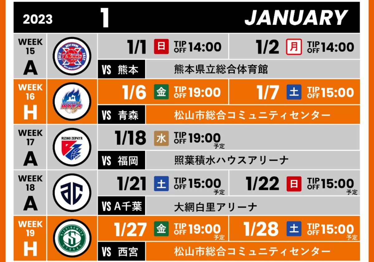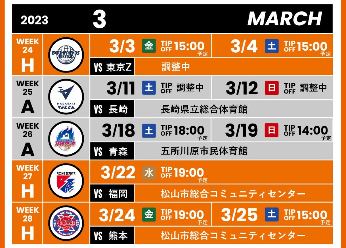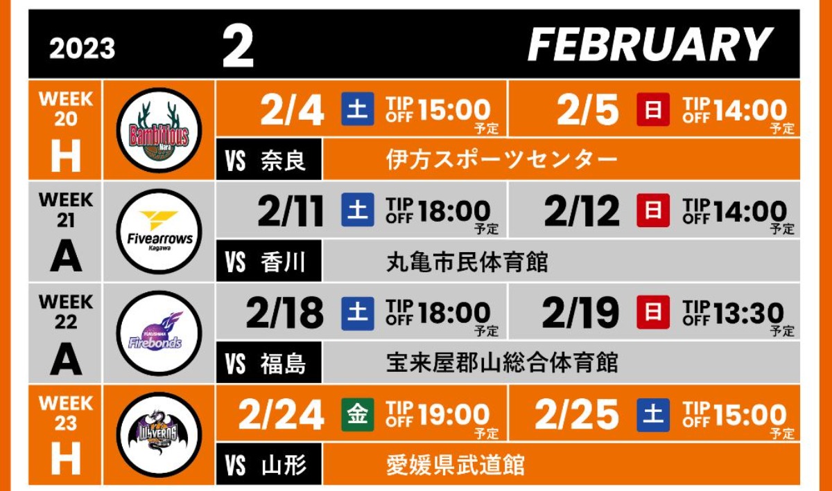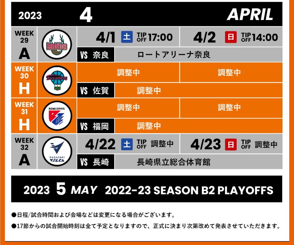 この度、B.LEAGUE B2 2022-23シーズン全試合日程が決定いたしましたのでお知らせいたします。