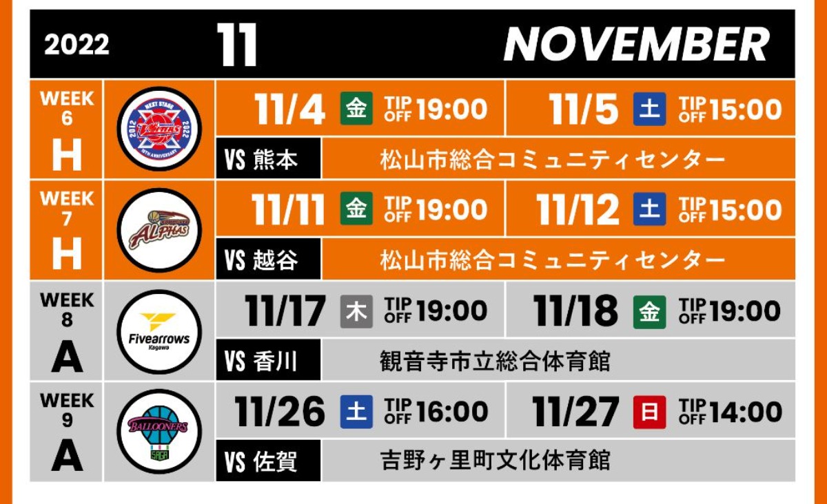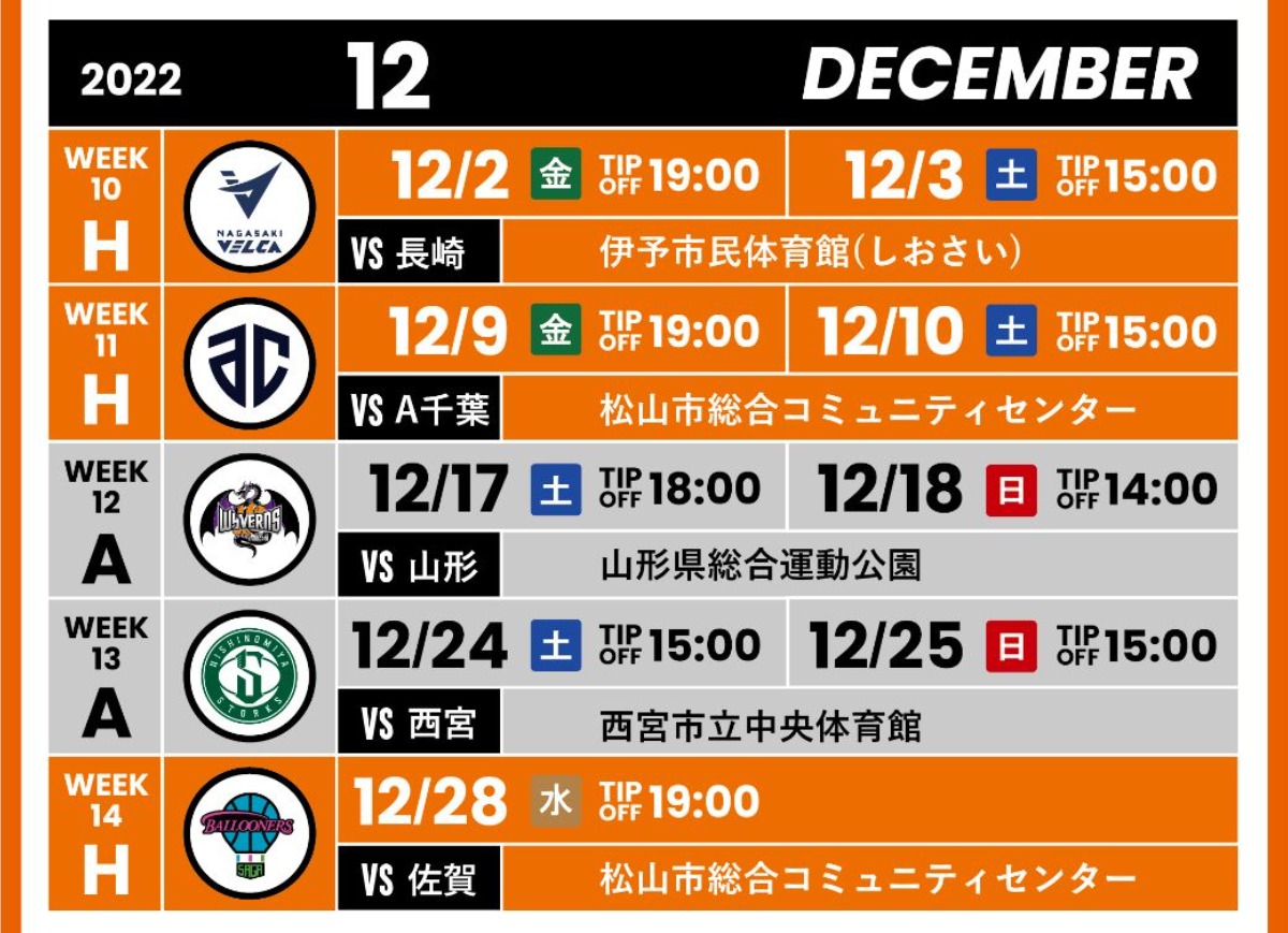 いつも愛媛オレンジバイキングスを応援していただき、誠にありがとうございます。