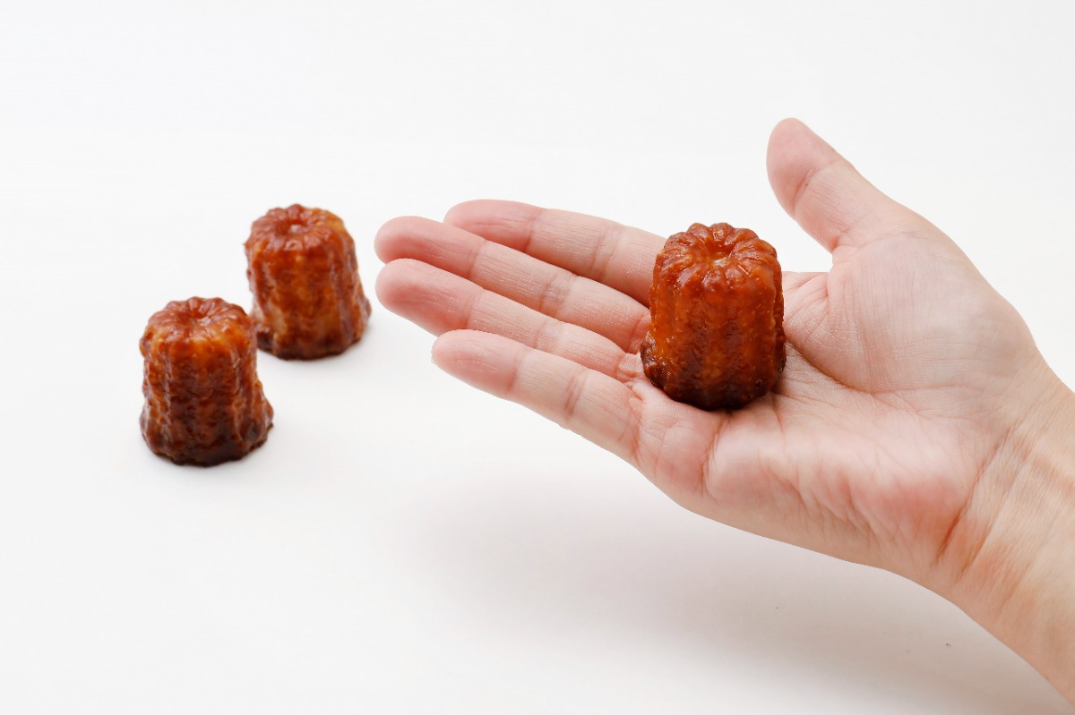 高さ3㎝ぐらいの超ミニサイズのカヌレ! サイズ感が可愛すぎたので思わず購入。外も内も、もっちもち! 一口で食べられます。