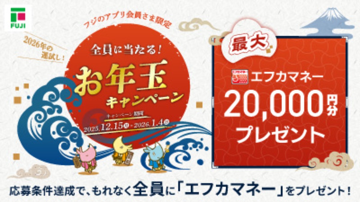 【フジ | 12/15(月)-1/4(日)】\エフカマネーが全員に当たる!/ お年玉キャンペーン