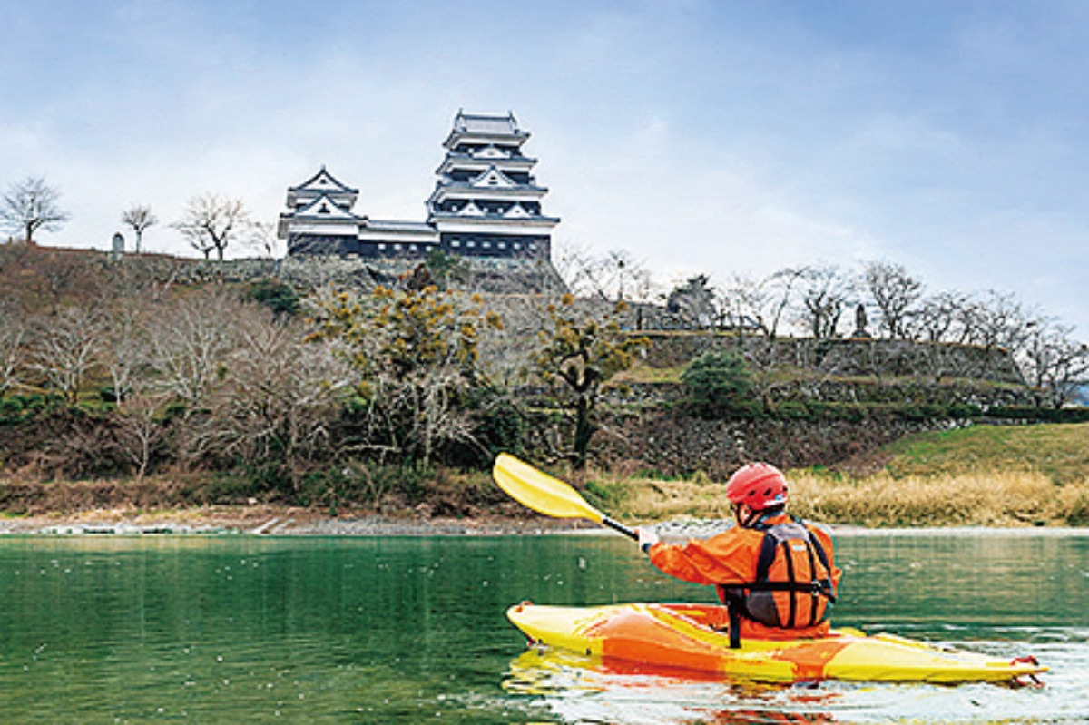 穏やかな清流肱川をガイドと一緒に下っていく。「道の駅清流の里ひじかわ」を出発し、終着地「大洲城」までゆっくりと流れる時間を楽しんで
