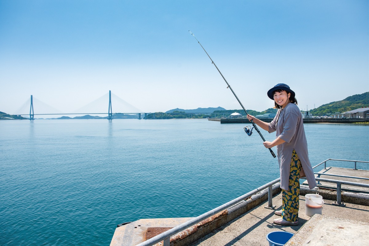 全長250mの桟橋(釣り台)があるフィッシング施設。目の前に多々羅大橋を望み、瀬戸内の島々を眺めながらのんびりと釣りが楽しめる。道具のレンタルも可能なので初心者も安心して挑戦できる。