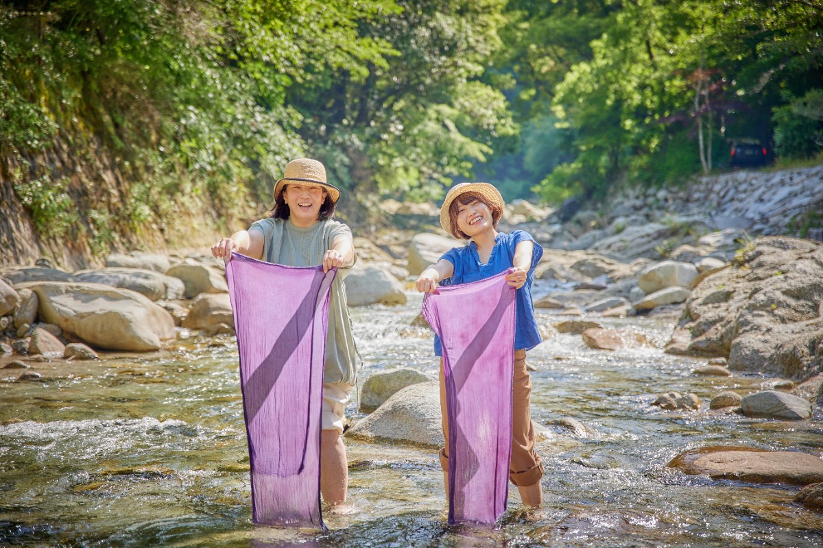 ブルーベリー狩りを楽しんだり、ブルーベリー染め体験にも参加できる。農園が準備してくれたハンカチを染めていこう。ブルーベリーの品種や様々な条件によってできあがりの色が変わるので世界に一つのオリジナルが作れる。
