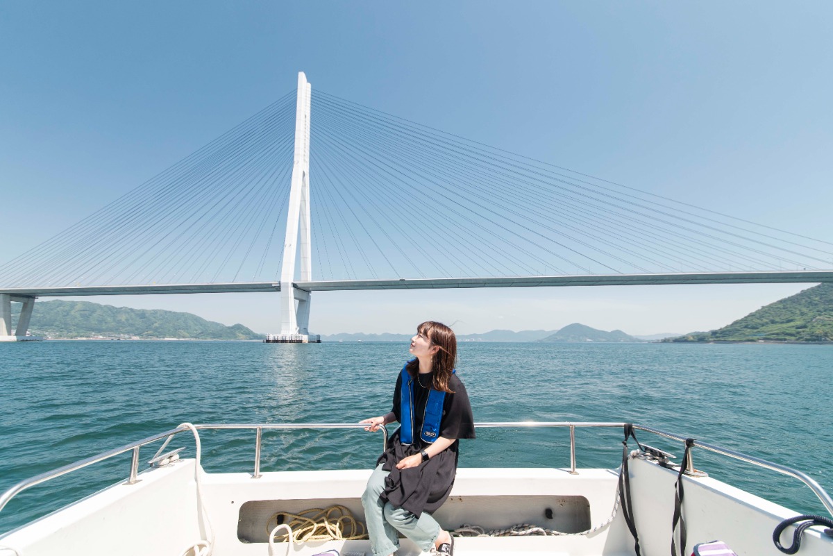 「WAKKA」発着のボートに乗り、多々羅大橋や瀬戸内の島々を間近に見られるショートクルージングツアー。