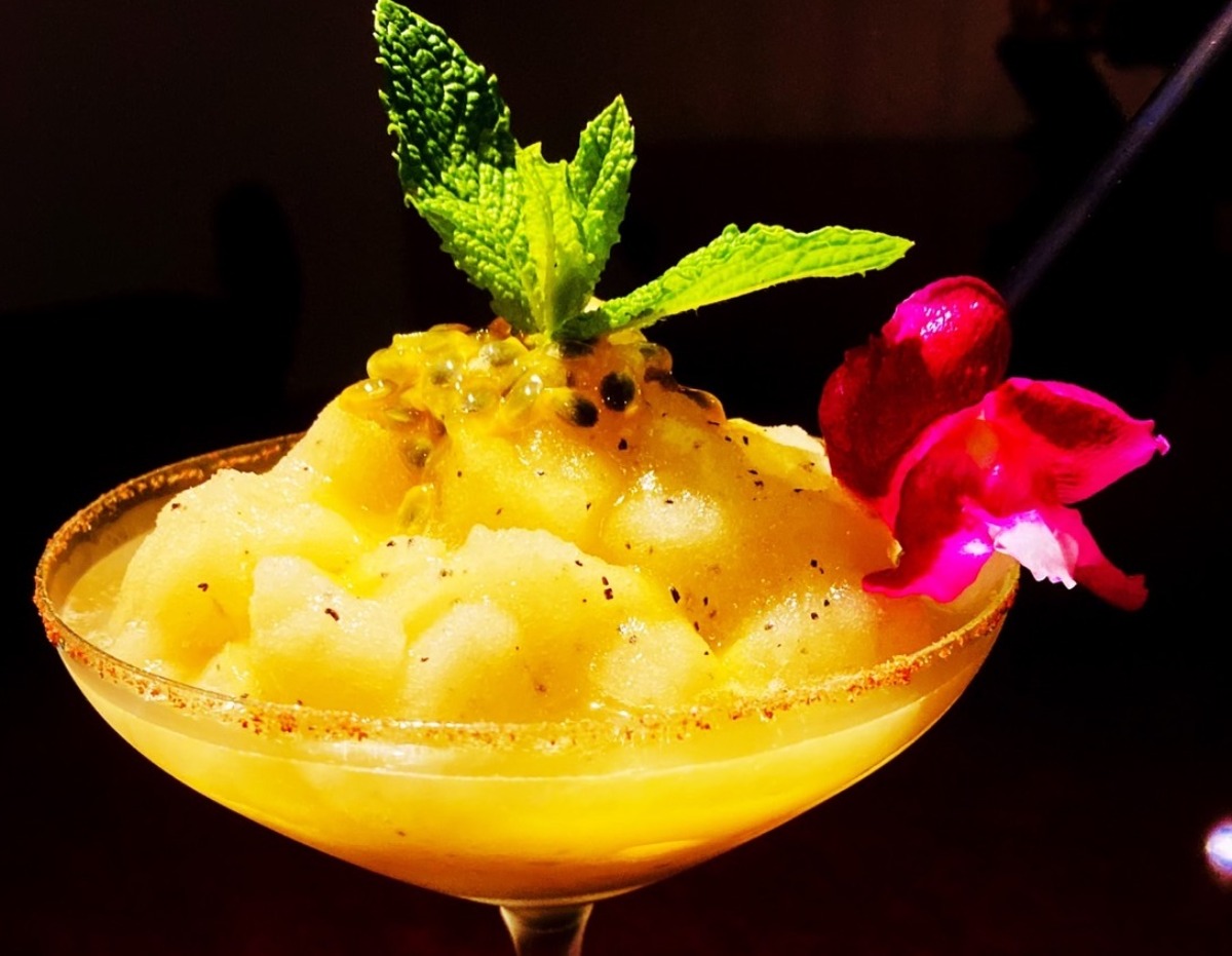 暑い日のイチオシは、季節のフルーツを使ったフローズンカクテル。中でも「パッションフルーツ フローズンマルガリータ」は、すっきりと爽やかな味わいで、ほてった体を癒やしてくれる。