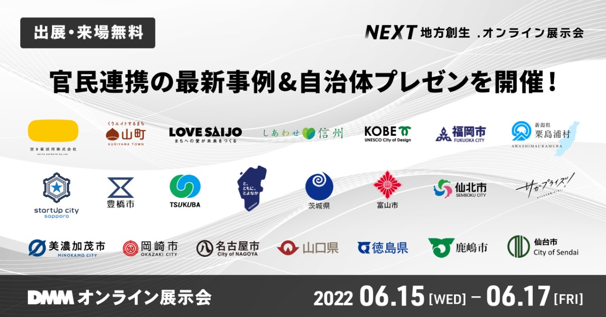 「NEXT 地方創生.オンライン展示会」(DMM.com主催)は、地方創生に挑む企業や自治体が一堂に会するオンラインイベント!