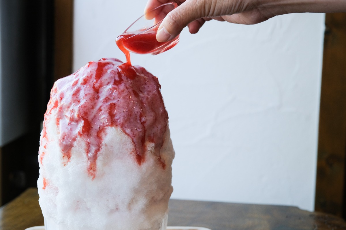 国産のいちごの自家製シロップをたっぷりとかけた、いちごのしっかりとした甘さと酸味を感じられる贅沢な一品。追いシロップでより濃厚な味わいに!