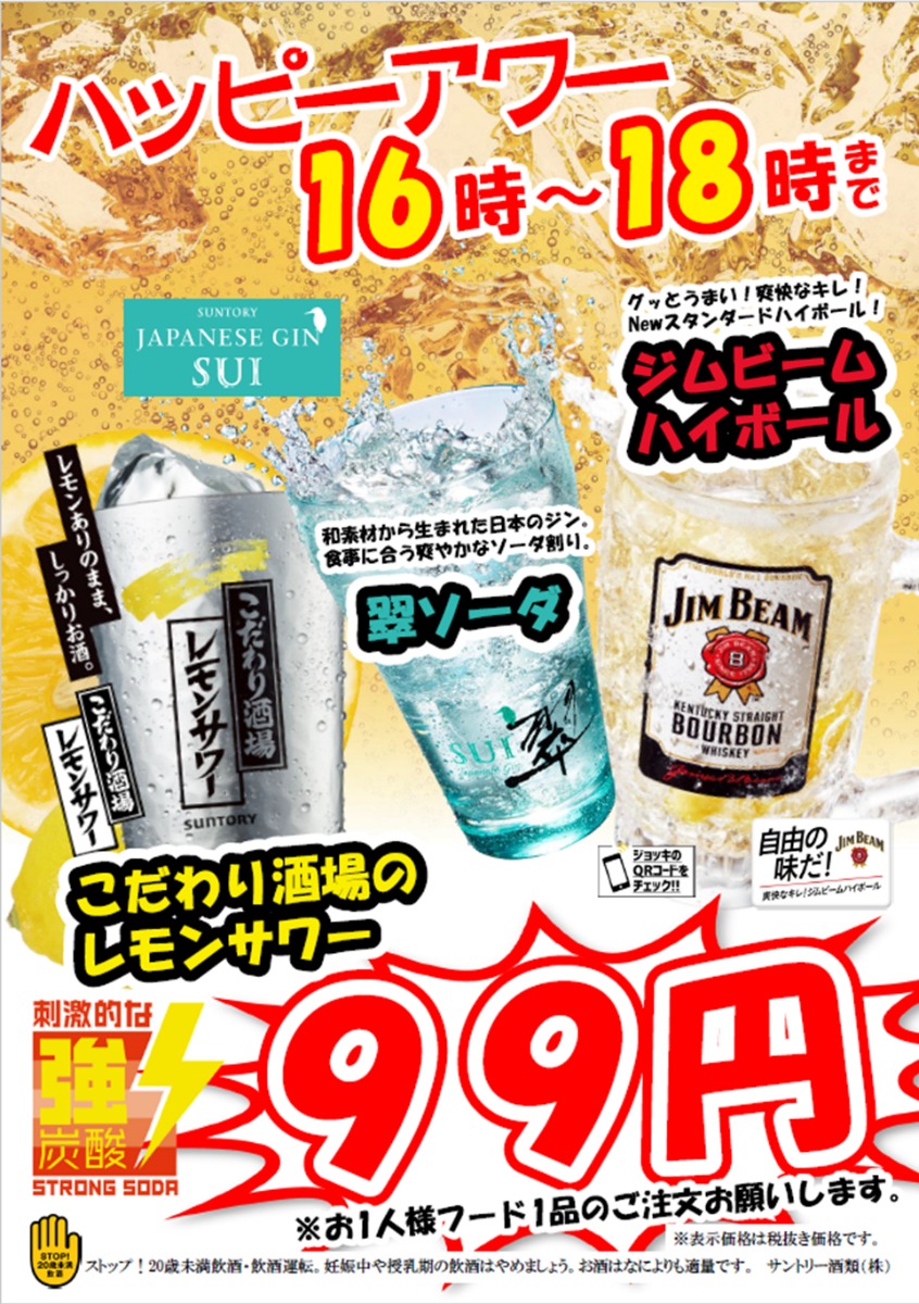 お酒好きに嬉しい「ハッピーアワー」