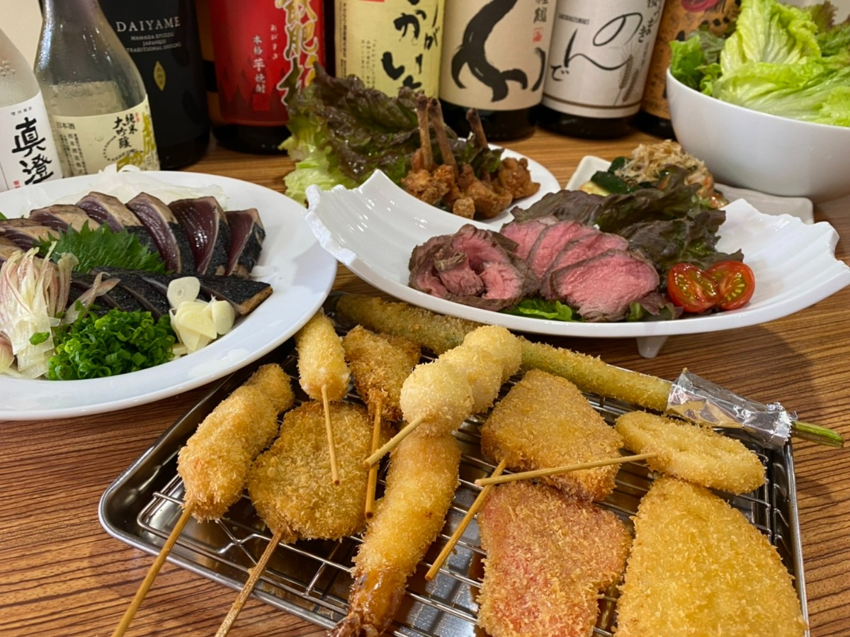 宇和島の飲み屋街に誕生した、串カツをメインにリーズナブルな価格設定が魅力の店。ハイボールやサワーが1杯無料になる「おみくじチャレンジ」も見逃せない!