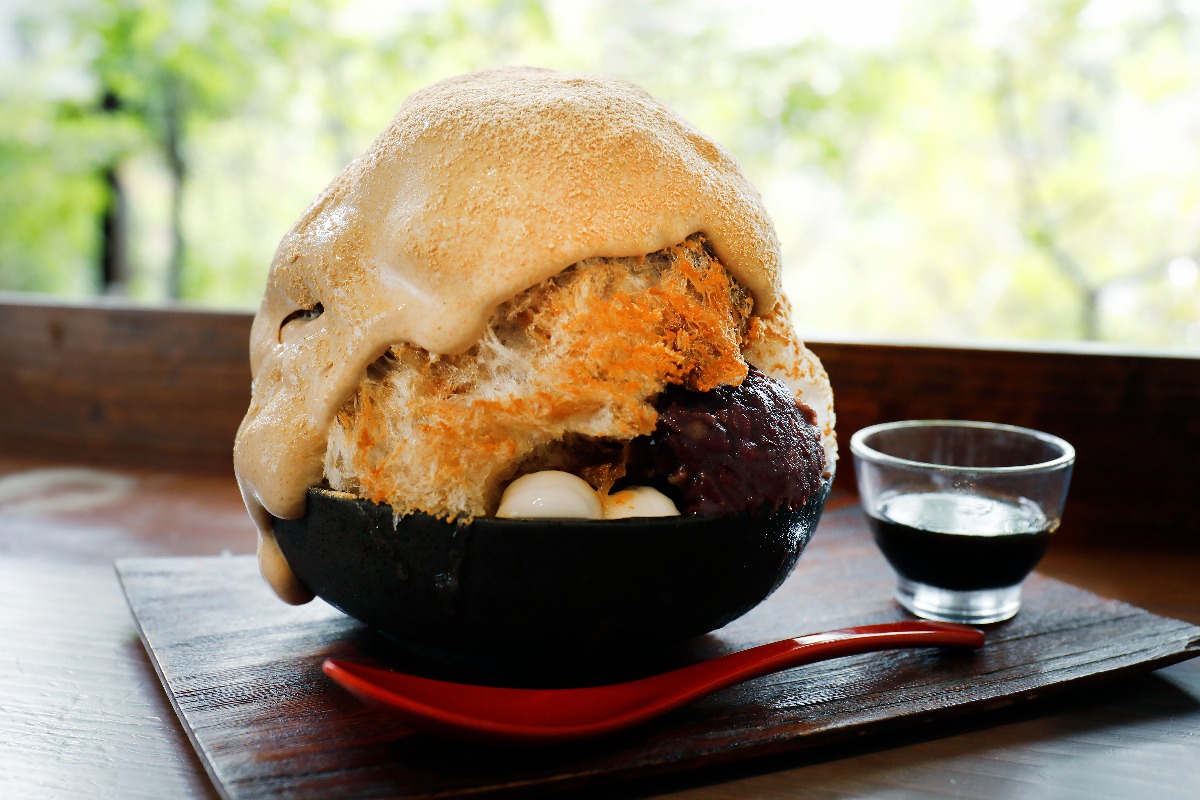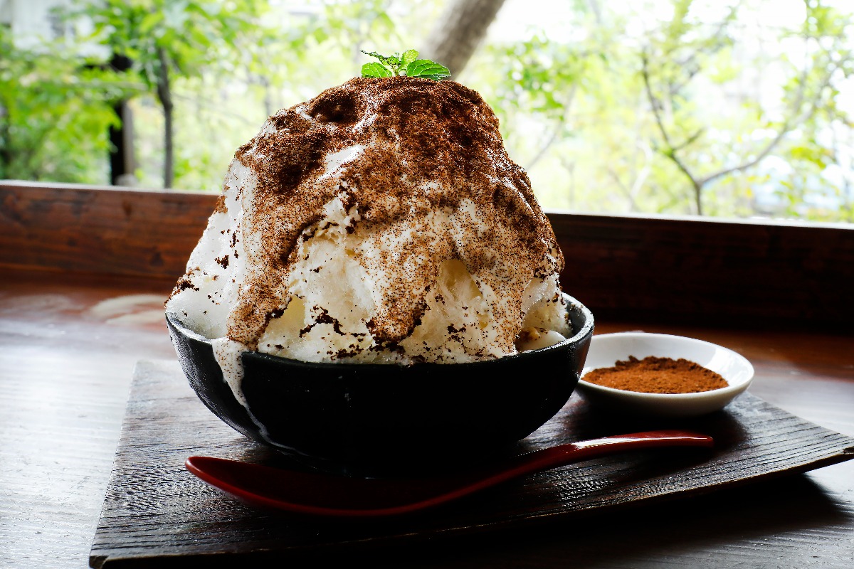 生クリーム、チーズ、ヨーグルトをベースにきなこを混ぜこんだ特製ソースは、奥深い味わいで黒蜜とも相性抜群! しっかり食べ応えのある和スイーツとして人気のかき氷。