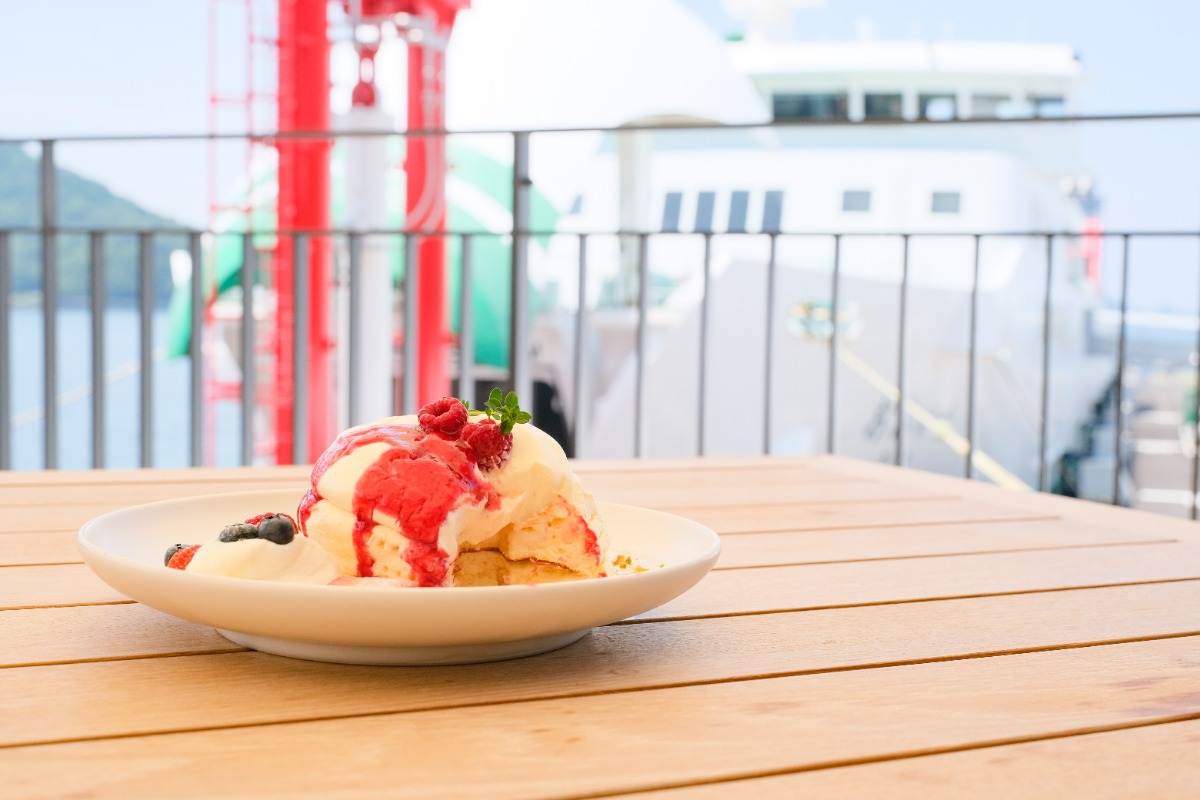 エスニック料理に加え、カフェメニューも充実!イチオシはベリーとクリームがたっぷりの「パンケーキ ラズベリー」。フォークですくうとプルプルと震える、驚きの柔らかさ!テーブルに運ばれてきたら、できるだけ早く味わうべし!ゆったりとした船や波の動きを眺めながら、贅沢なひとときを過ごそう。