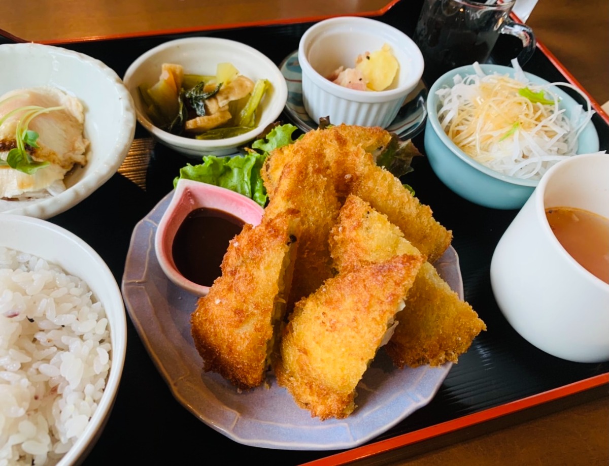 名物、日替わりランチは、2~3種の内容から選べるメインディッシュに色とりどりの小鉢やプチデザートがつき、いろんな物をちょこっとずつ食べたい人にぴったり。プラス200円でケーキも付き、ドリンク代も割引き価格になるので、女子会にもオススメ。