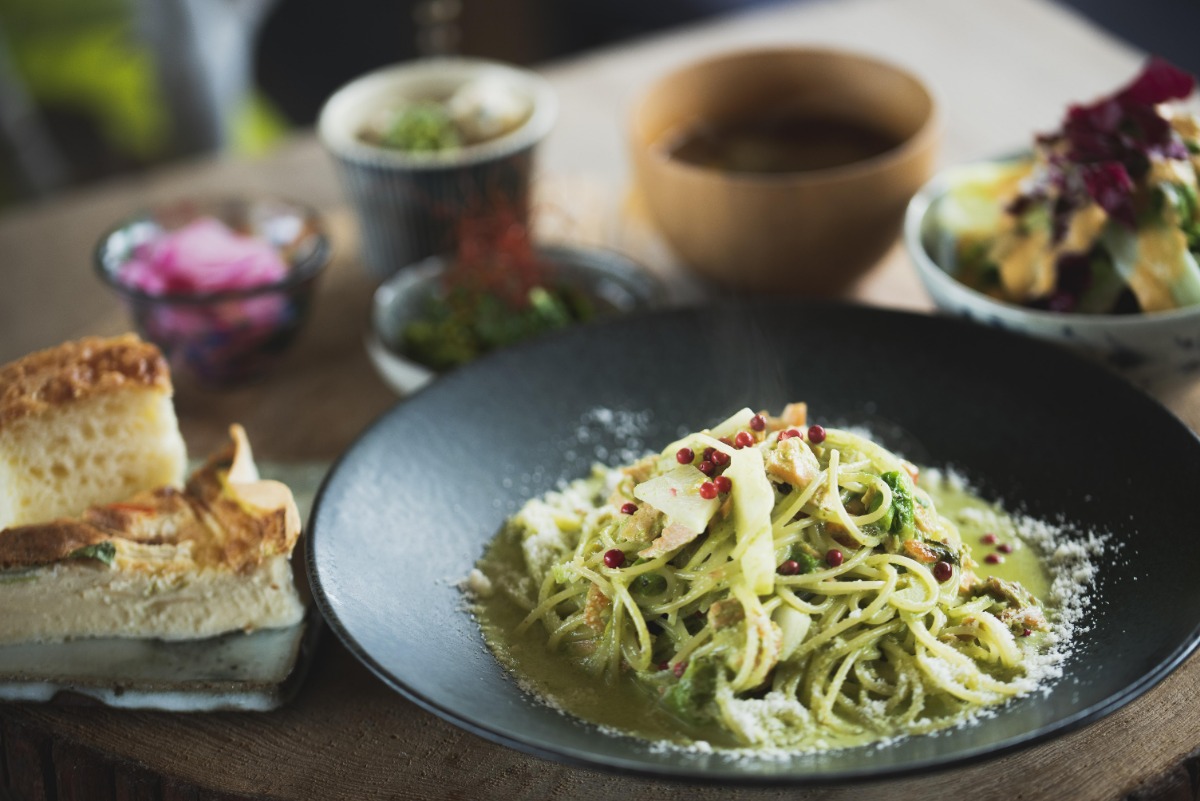 無農薬野菜を使ったイタリアンが人気の店。自家製のキッシュやおかず、パスタなど彩り豊かなランチだけではなく、季節の食材が華やぐアラカルトやコースが魅力のディナーも人気! 昼夜問わず多くの人で賑わう。