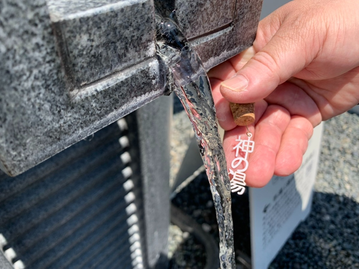 3.「神の湯」に源泉が染み込んだら、文字が崩れないように瓶の中に戻してください。