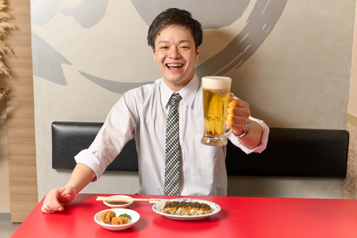 仕事終わりのチョイ飲みにぴったり! 期間限定で赤・黒・白から選べる餃子+唐揚げ2個orおでん2種+生ビールが付いた「とん得チョイ飲みセット」(1,000円)も提供中!