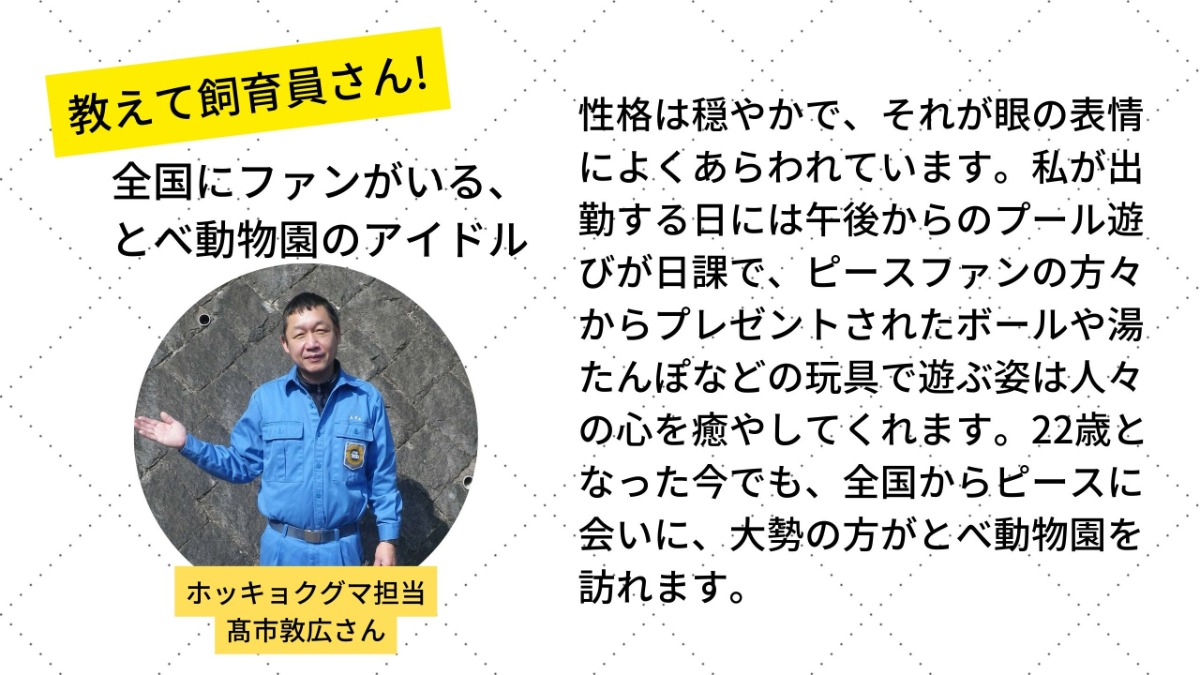 ピースの日々の様子はYouTubeで配信中!(愛媛県立とべ動物園公 式YouTube)
