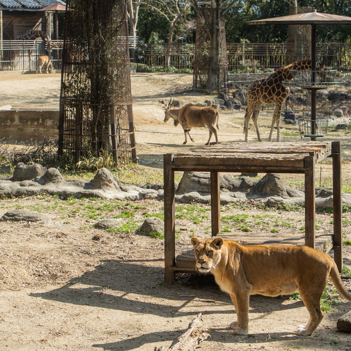 サバンナエリアでは柵や檻をできるだけ使わず段差や堀を利用したパノラマ展示(無柵放養)をしており、肉食動物と装飾動物が同じ空間にいるかのように見える。また、キリンの杏子は現在妊娠中で2022年8月出産予定!
