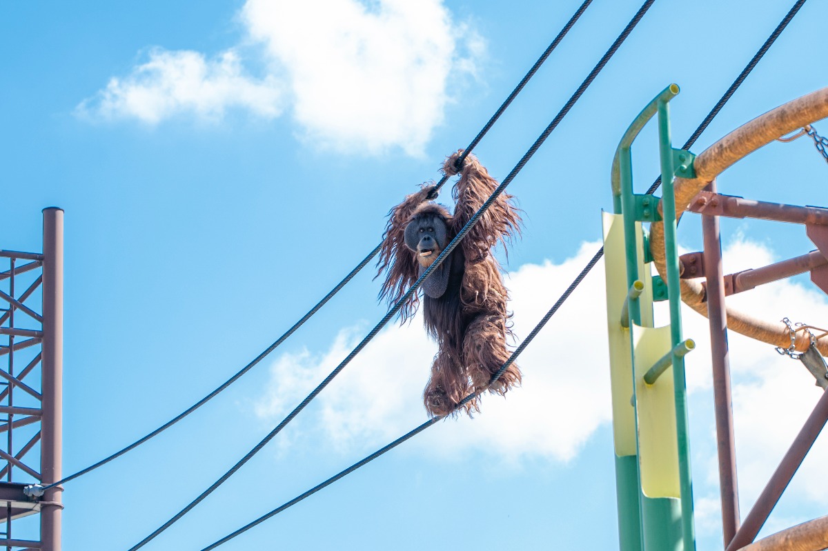 POINT3|行動展示のひとつ、オランウータンの空中散歩