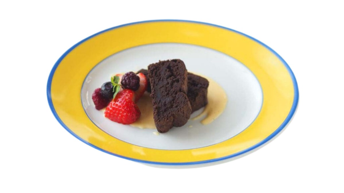 濃厚なショコラと季節のフルーツがポイント。プラス250円でドリンクセットに変更OK!
