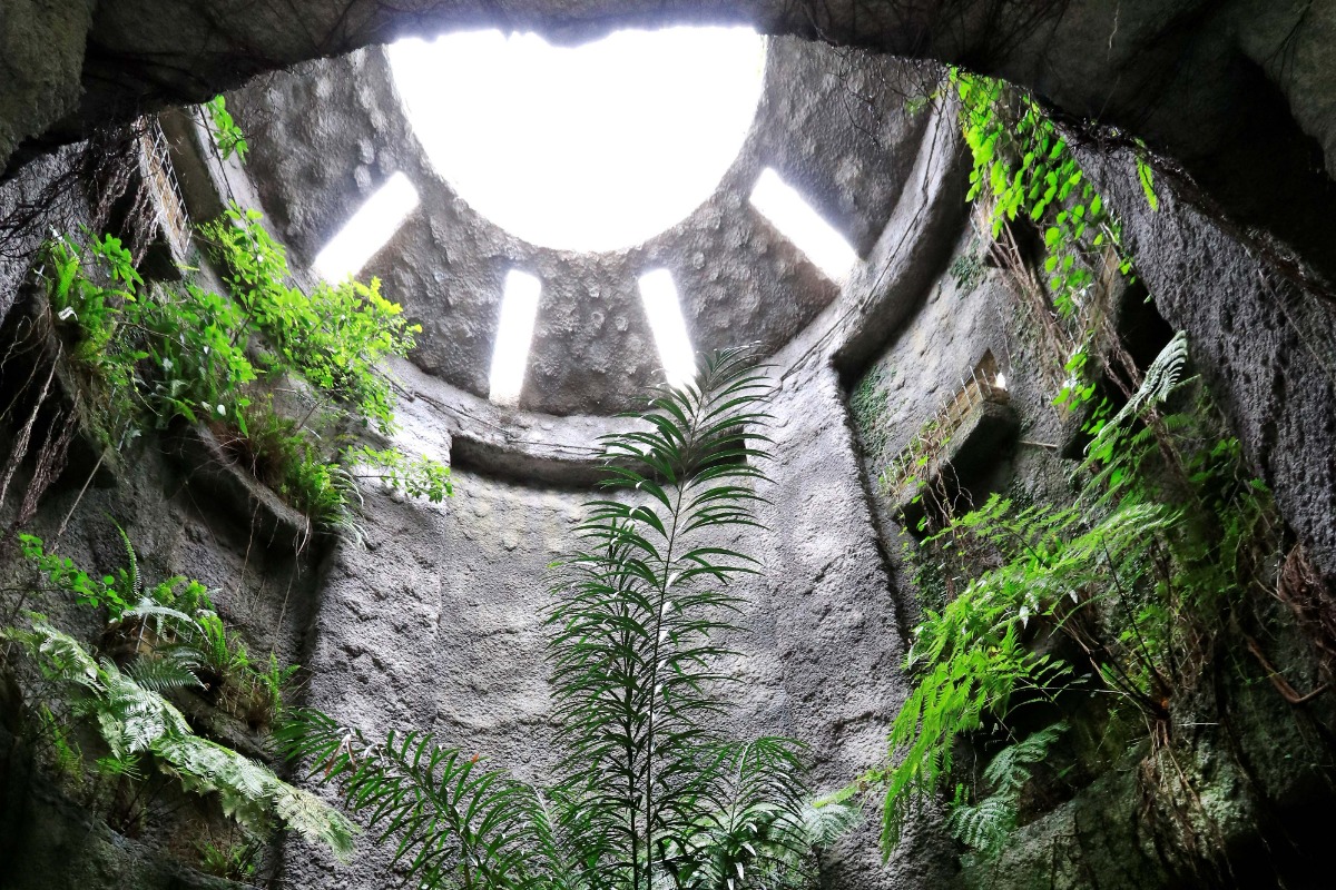 植物一つひとつに付いた解説ラベルを見ながらじっくりと鑑賞することができる園内。標高1000mを超える山地から海岸に至るまでの、高知県(土佐)の自然を再現した土佐の植物生態園も見ごたえあり。写真は、温室の入口部分にあたる「みどりの塔」。