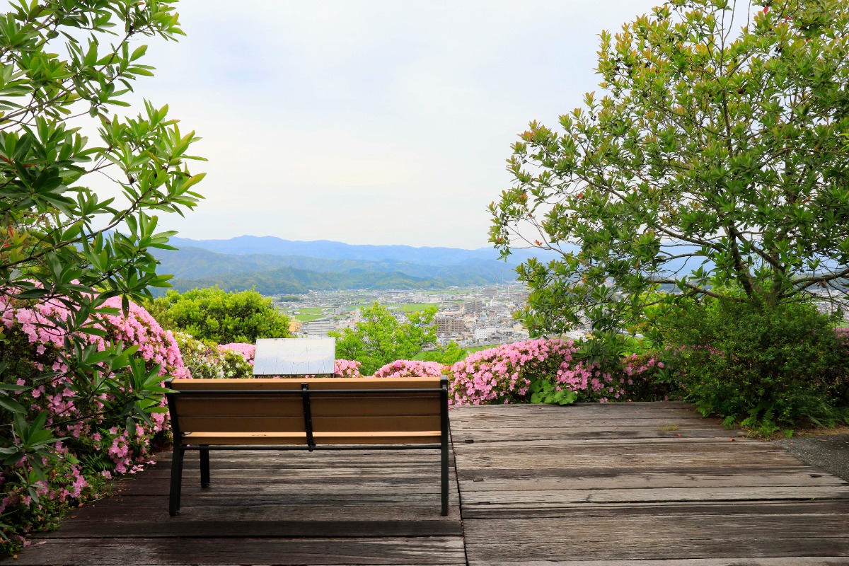 こんこん山広場や「牧野富太郎記念館 展示館」の隣のデッキからは高知市内を一望することも可能。4月から5月下旬頃までは美しいツツジを見ることができる。テイクアウトを利用したり弁当を持参したりしてピクニックを楽しもう。