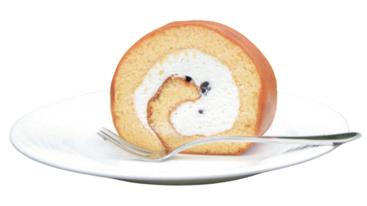 牧野博士のサインである「の」を模したオリジナルロールケーキ。ドリンクセットもあり!