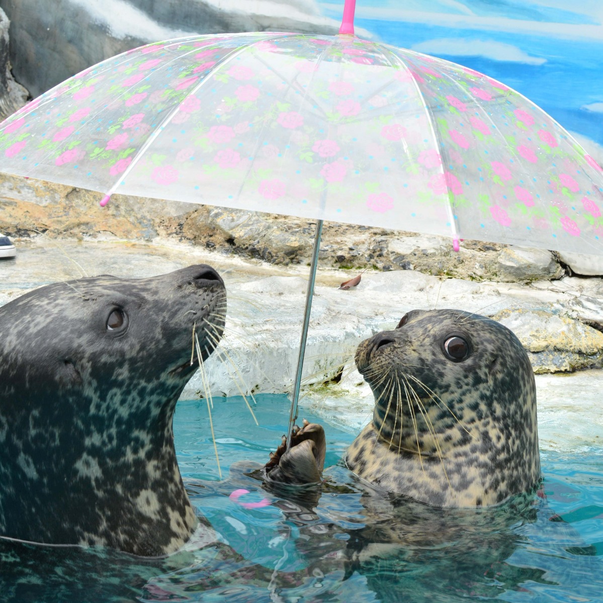POINT2|ゼニガタアザラシの 相合傘&見事な演技