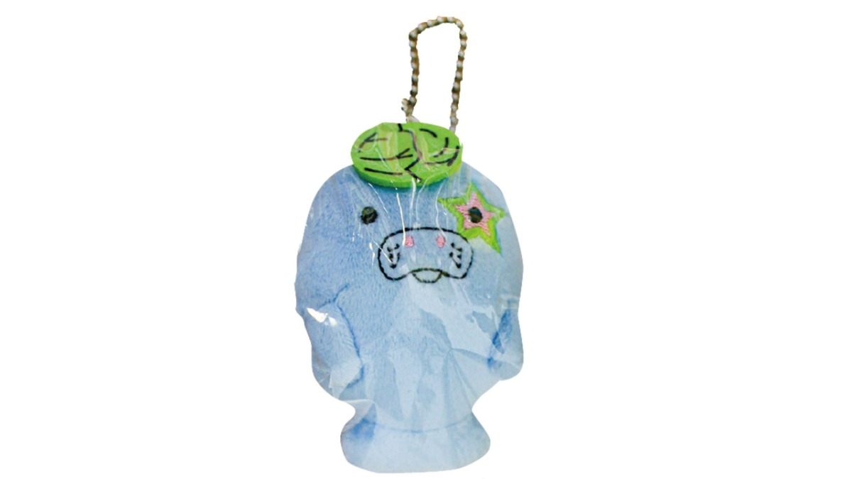 「新屋島水族館」の公式キャラ、マナやんの小さなぬいぐるみキーホルダー。