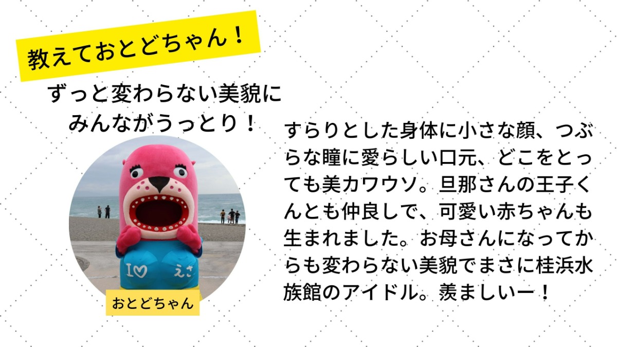 桂浜公園内にある「桂浜水族館」は、年間10万人の観光客が訪れる高知の歴史を感じられるローカル色が強い施設。ここで飼育されている生きものは、トド、アシカ、オットセイ、コツメカワウソやペンギン、ウミガメなど約220種、4000点にも及ぶ。公式マスコットキャラクターのおとどちゃん、そして飼育員たちの強烈なキャラクターが全国的にも話題になり、『ねとらぼ調査隊』で2021年と2022年の2年連続で「全国の人気水族館ランキング」1位を獲得し、さらに注目を集める!