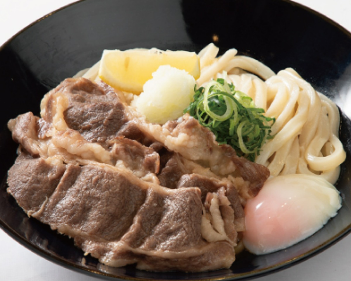 「キッチンせとうち」で提供しているオリーブ牛の肉を贅沢にのせた讃岐うどん。