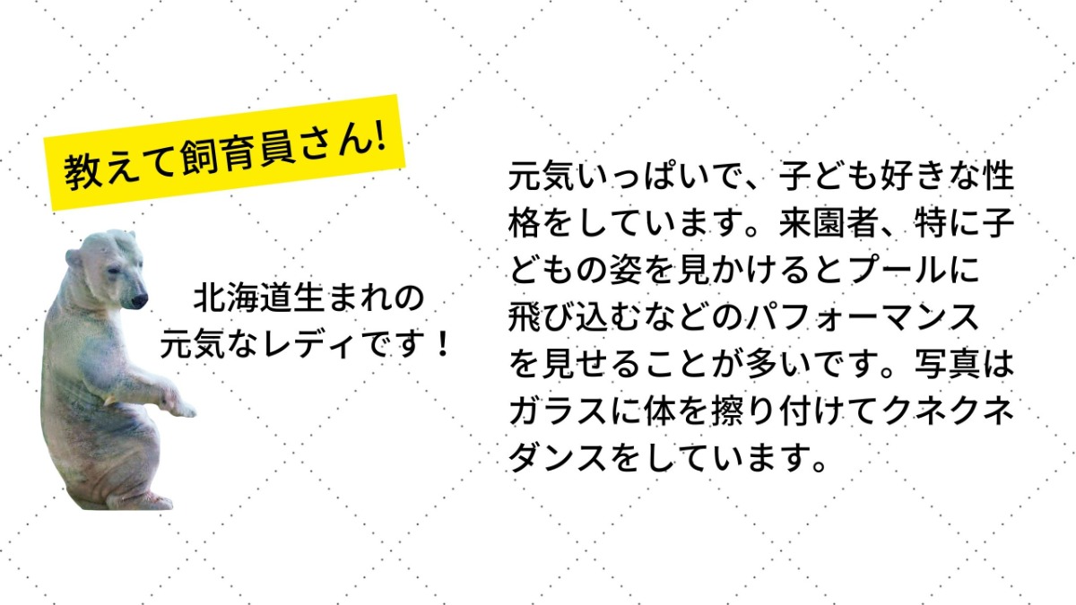 平成26年に北海道の円山動物園からやってきたポロロ。来園当時はまだあどけない顔立ちだったが、今は素敵なレディに成長。HPで「ポロロ日和」更新中!