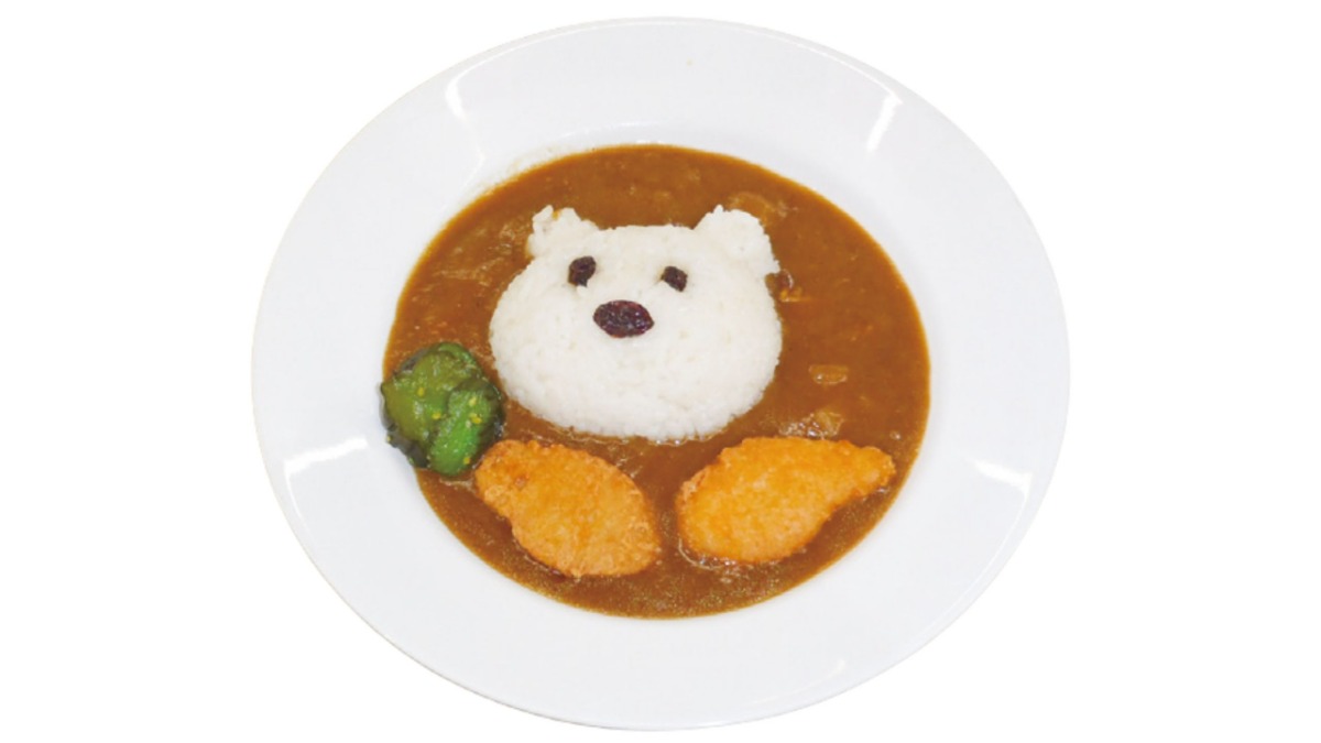 ホッキョクグマの形をしたごはんに甘口カレーをかけ、チキンナゲットとピクルスをトッピング!