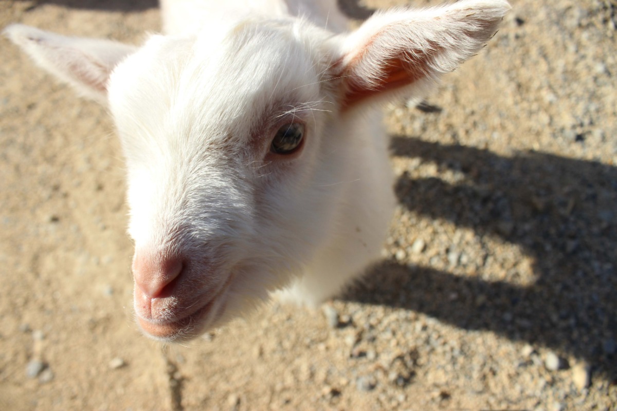 ヤギ、ウサギ、モルモット、ヒヨコ、イヌなど、いつでも自由に動物とふれあうことができる。イヌ専用のおやつや、ビスケットタイプのおやつも販売しているのでエサやりもOK!※動物の種類は変更の可能性あり。