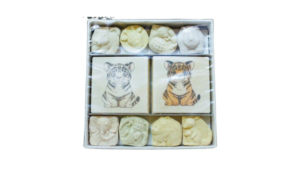 可愛い動物たちが描かれた「しろとり動物園」オリジナルパッケージ。軽い食感が子どもに人気!