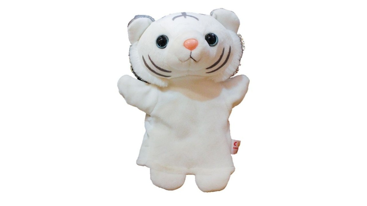 人気のホワイトタイガー・ハクをイメージした、中に手を入れて遊ぶパペット人形!