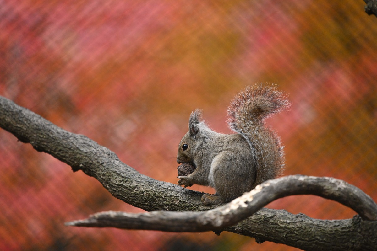 いつもは展示場の外からしか見ることができないニホンリスの様子を、間近でじっくりと観察できる。