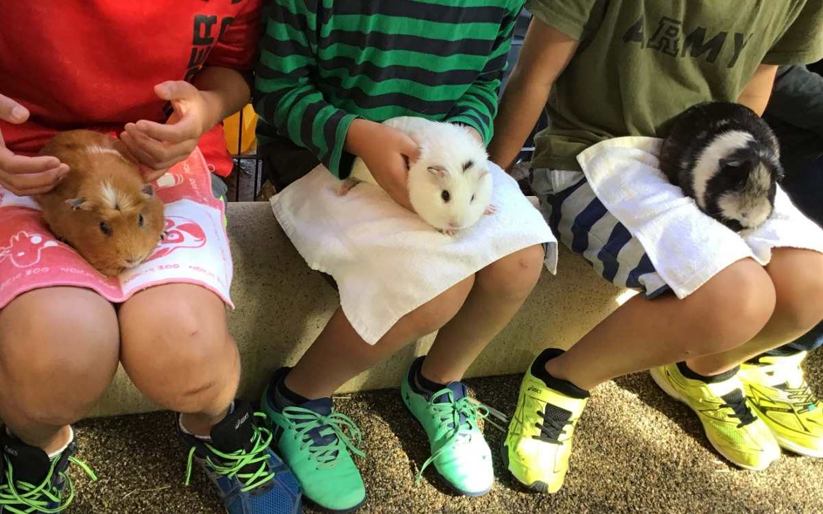 動物のぬくもりを感じられる人気のコーナー。実はよく鳴くモルモットのいろんな鳴き声も聞いてみよう!