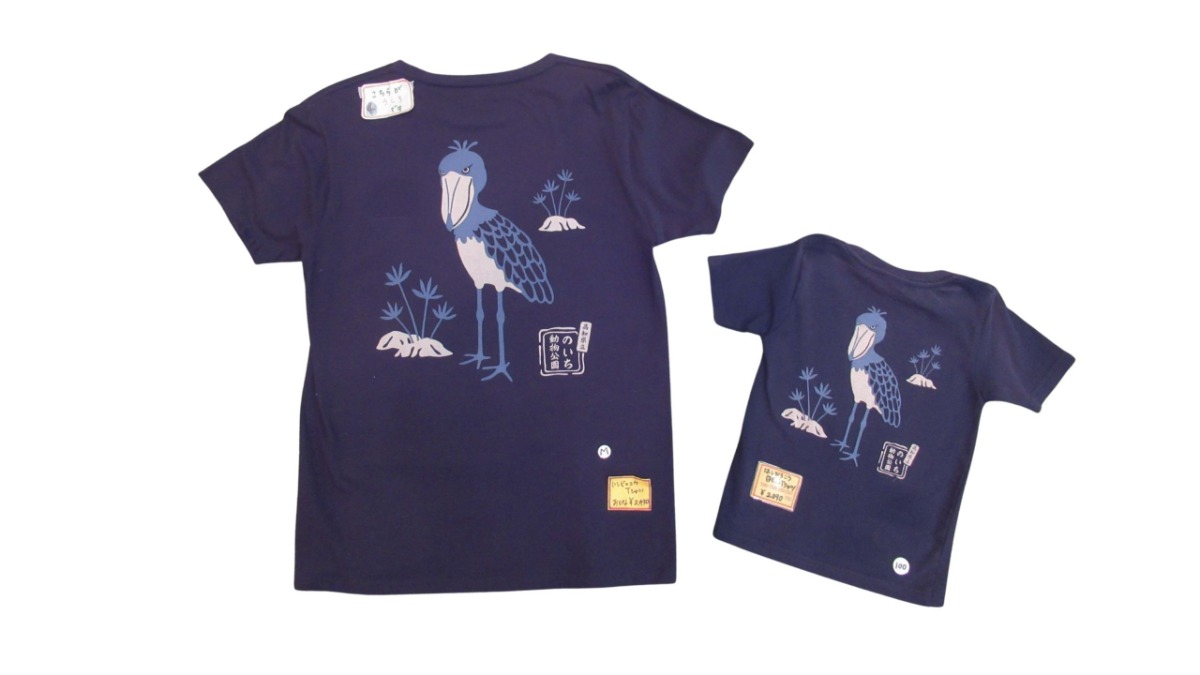ハシビロコウTシャツ 子どもサイズ(2,090円)、大人サイズ(2,430円)