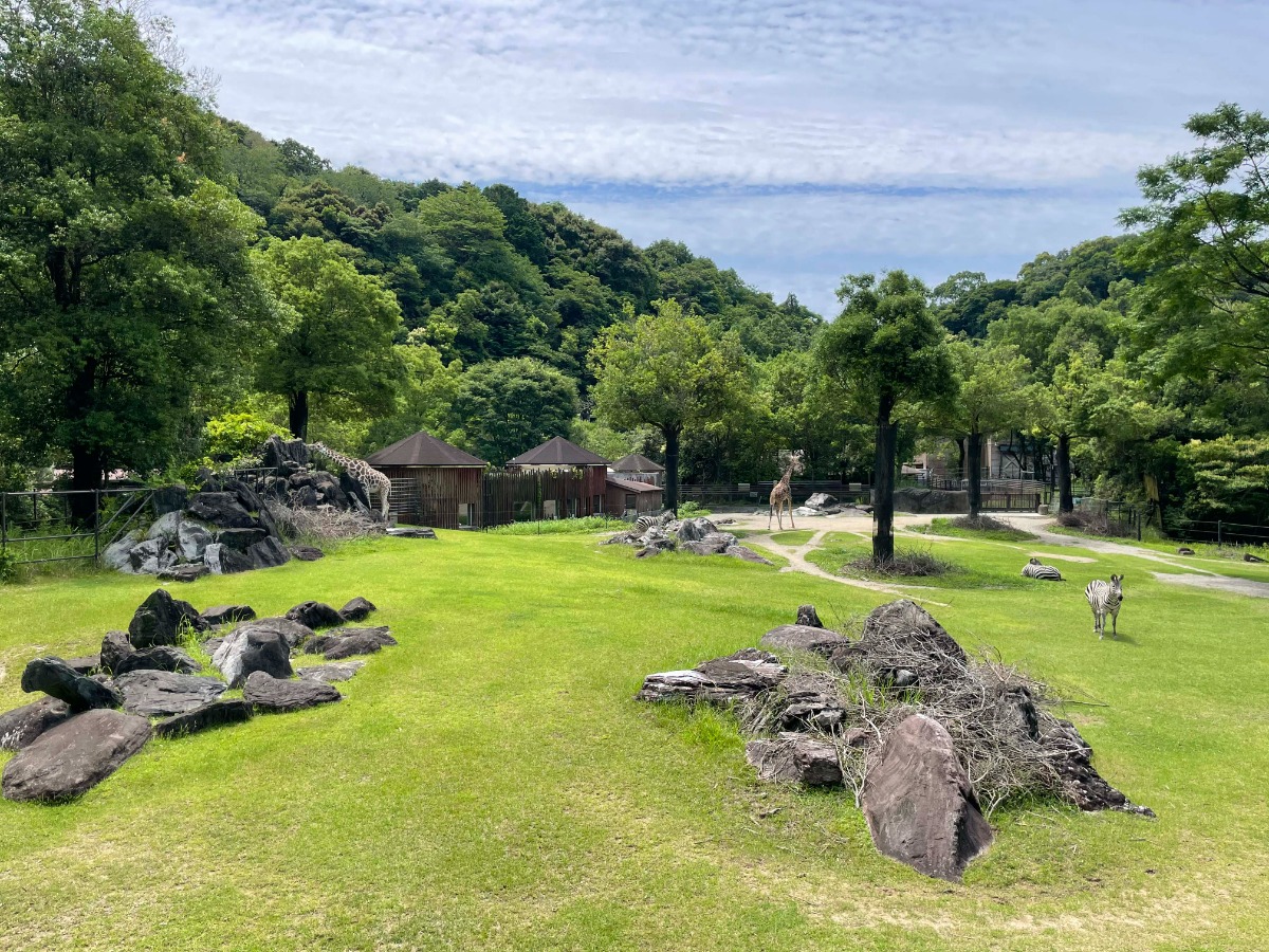 自然豊かな園内で動物の生息環境をできるだけ再現した展示方法を採用。檻や柵がズラリと並んでいる動物園とは異なり、緑の中を進んでいくとその先々で動物に出会うというイメージ!
