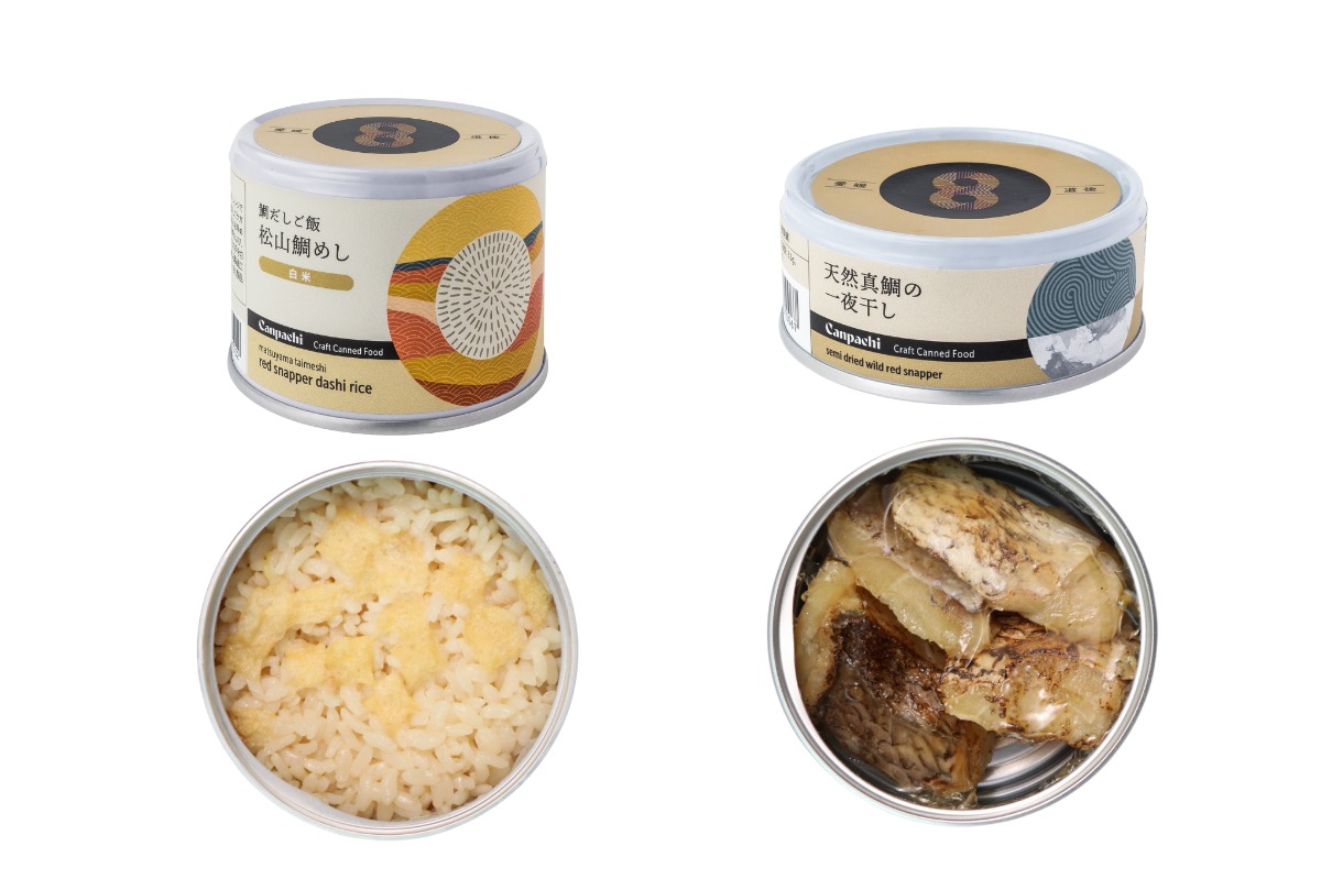 瀬戸内海のタイやサバ、イワシなどの魚介を使った缶詰は156種! 種類によってそのイメージに合ったパッケージのデザインに変更しているのもこだわりの一つ。特に人気なのは、愛媛の郷土料理である鯛めしの缶詰。おかずの缶詰とセットで購入するのがおすすめ!