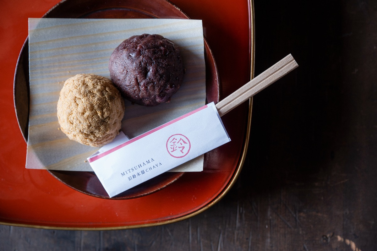 日本有形文化財の茶屋で、手作りおはぎと煎れたてのお茶を
