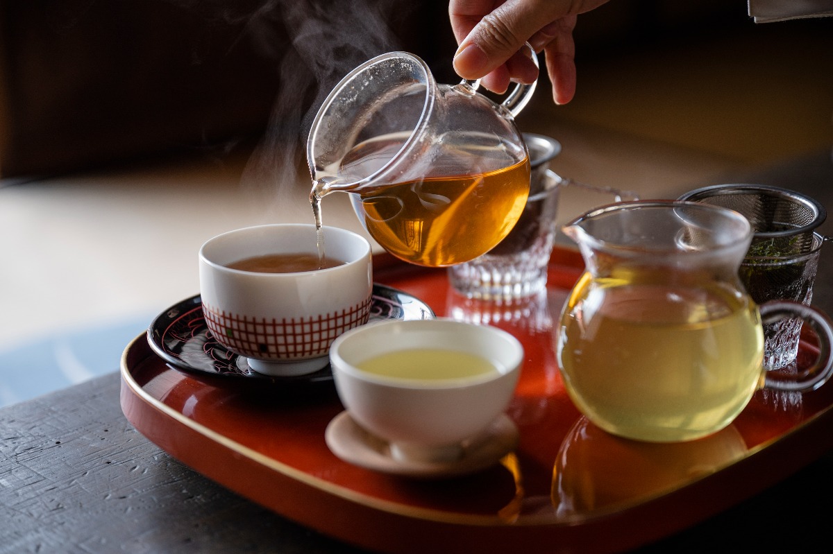 「脇製茶場」から仕入れたお茶は、ほうじ茶、煎茶、極上煎茶の3種類。おはぎに合うお茶を選んでいる。