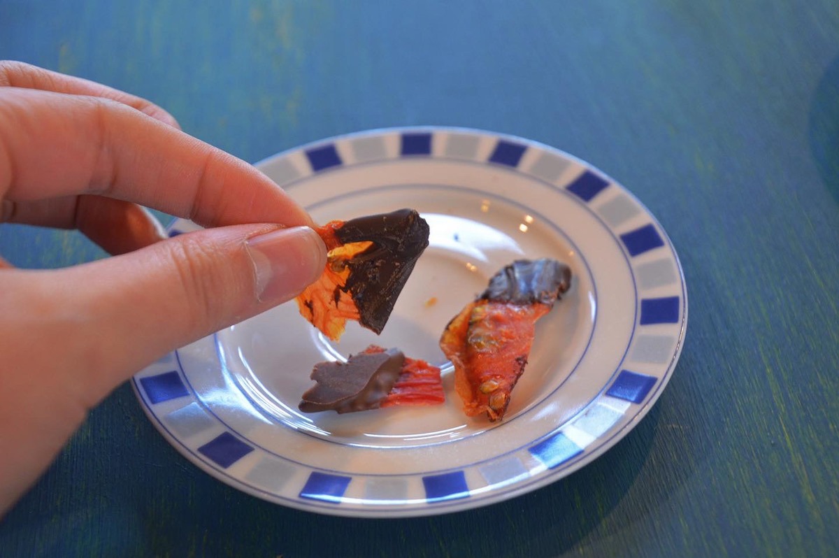 コーヒーと一緒についてきた升田農園 自家製ドライトマトチョコ これまたコーヒーに合う!