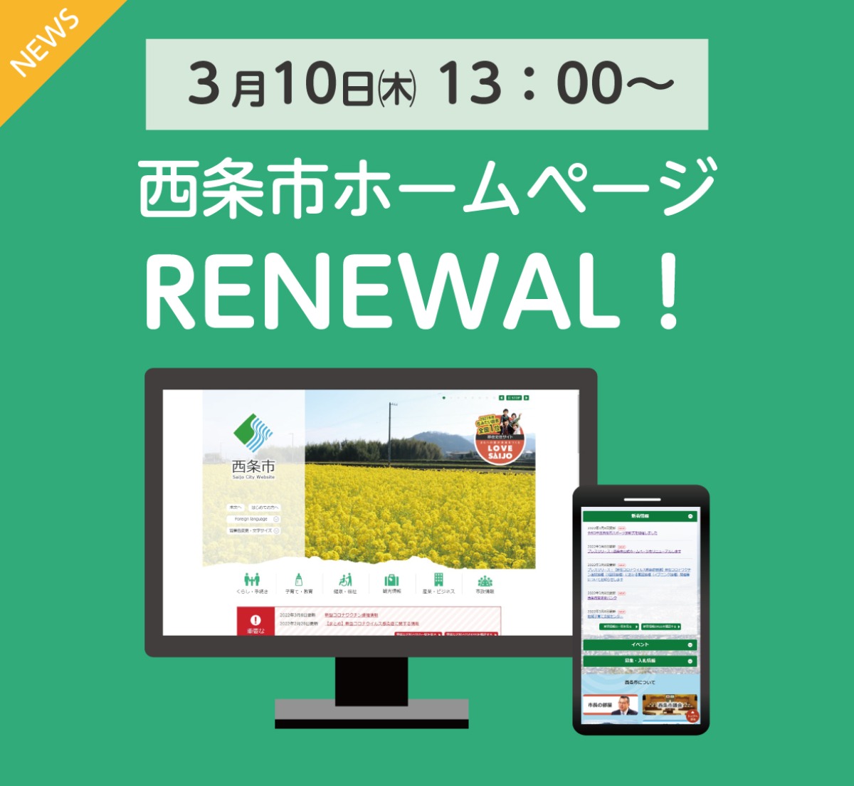 西条市ホームページは、「使いやすさ」と「見やすさ」の向上を目指して、リニューアルしました。