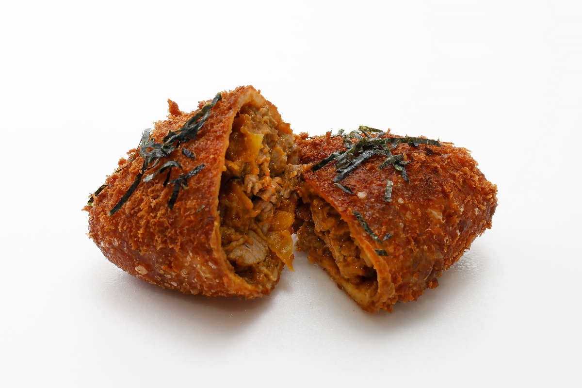 卵入りカレーパンと同じルウに牛肉が3・4枚入った、とにかく贅沢なカレーパン。これ目当てに土日に足を運びたい! 「エビカレーパン」も気になります~!