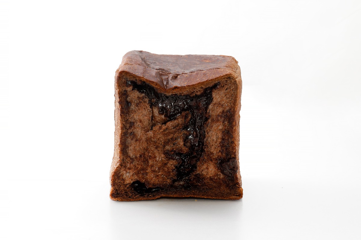 チョコレート食パンの生地に、クレームダマンドのチョコレート味を上からたっぷり絞った一品。チョコレートチップを散りばめて、味と食感にアクセントをプラス! チョコ好きにはたまりません!