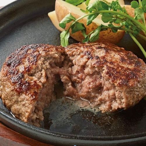 高級黒毛和牛のざき牛のミンチ肉を100%使用した贅沢なハンバーグ。今なら特別価格で4個セットが3,369円に!